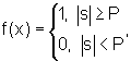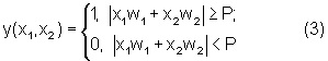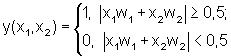 Весовые коэффициенты имеют постоянные значения во всех случаях: w1=1, w2=-1. Величину порога примем равной, например, 0,5. Результат подстановки модульной функции в пороговую будет выглядеть аналогично (2):