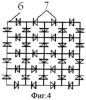 Пример выполнения управляемого слоя – 5 изображен на фиг.4. Он состоит из двумерно-периодической решетки – 6 проводящих элементов (полосок или стержней), в разрывы которых включены управляемые полупроводниковые диоды – 7.