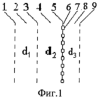 1 – длина волны на частоте f1, 2 – длина волны на частоте f2.