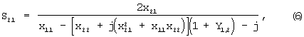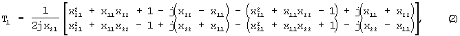 Перемножая матрицы Т1 и Т2 найдем общую волновую матрицу передачи всего устройства. После этого, используя известные соотношения между элементами волновой матрицы передачи и элементами матрицы рассеяния [Фельдштейн А.Л., Явич Л.Р. Синтез четырехполюсников и восьмиполюсников СВЧ. – М: Связь, 1971. – с.37] и учтя свойство взаимности первого четырехполюсника (jx12=-jx21), получим выражения для коэффициентов отражения S11 и передачи S21: