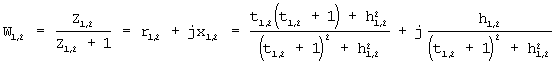 Пусть на двух фиксированных частотах заданы значения сопротивлений управляемого элемента в двух состояниях Z1,2 =t1,2+jh1,2 определяемых уровнями управляющего низкочастотного сигнала.