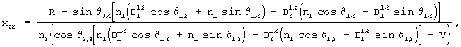 Поскольку элементы матрицы сопротивления определяются только параметрами неуправляемых слоев, то значения x11, x21, x22 полученные, с одной стороны, для случая манипуляции проходного сигнала, а, с другой стороны, для случая манипуляции отраженного сигнала должны быть равны между собой и из этого равенства вытекает ограничение на третий элемент матрицы сопротивления: