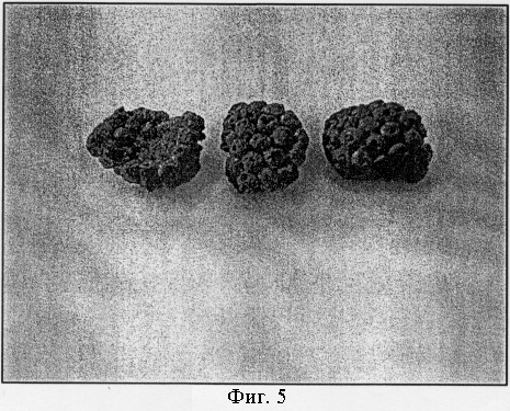 Фиг.5 является фотографией, показывающей один из возможных вариантов выполнения предлагаемого вспученного зернового продукта. Фотография снята с трех различных ракурсов.