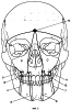 При переломах верхней челюсти (фиг.2) вмешательство проводят под эндотрахеальным наркозом с интубацией трахеи через нос и местным инфильтрационным обезболиванием. Через проколы кожи в подчелюстных областях вокруг нижней челюсти вестибулярно и язычно проводят проволочные лигатуры 5-8 в области 46-47, 44-43, 33-34 и 36-37 зубов соответственно. Между первым и вторым молярами, а также между первым премоляром и клыком верхней челюсти справа и слева просверливают четыре отверстия 9-12 в альвеолярном отростке, через которые проводят проволочные лигатуры 5-8. На концы проволоки, выходящие из отверстий 9-12 в альвеолярном отростке верхней челюсти с вестибулярной стороны, надевают фрагменты подключичного катетера длиной 4-5 см, которые перемещают в костные каналы. Производят сопоставление челюстей в положение центральной окклюзии, после чего челюсти фиксируют путем скручивания концов проволочных лигатур и выполняют подвешивание к костям черепа любым из известных методов. Например, через рану кожи лба на 1,5 см выше переносицы в переднюю поверхность лобной кости по средней линии ввинчивают шуруп 13. С помощью специального проводника подвешивающие проволочные лигатуры в боковых отделах проводят из точки на переходной складке на уровне 6-7 зубов подскуловым доступом в операционную рану на коже лба. Свободные концы наложенных швов 5-8 в переднем отделе выводят в рану кожи лба вдоль боковых поверхностей носа справа и слева. Верхнюю челюсть вместе с фиксированной к ней нижней челюстью репонируют в правильное положение, после чего проволочные лигатуры крепят к шурупу 13. Рану кожи лба ушивают. На нее, а также на области проколов кожи накладывают спиртовые повязки. В послеоперационном периоде пациентам назначают антибактериальную и аналгезирующую терапию, местную гипотермию. Обязательно ношение подбородочно-теменной повязки.