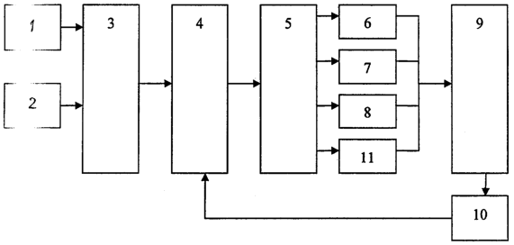 Регулирование длительности импульсов и промежутков между ними может осуществляться включением и выключением выбранных источников по программе, задаваемой блоком задания режимов подачи газа 4.