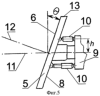 При поиске цели поверхность 6 антенны 5 со щелями 7 (см. фиг.5, 6) вращается совместно с наклонной крепежной поверхностью 8 корпуса 9 с помощью гидравлических цилиндров 10. Благодаря наклонному положению крепежной поверхности 8 расположение оси 11 диаграммы направленности направлено на цель при ее обнаружении, а продольная ось 12 антенны отклонена при этом на угол и поверхность 6 антенны 5 не перпендикулярна оси диаграммы направленности. Излучения РЛС самолета-цели 3, падая на поверхность 6 антенны 5, отражаются в пространство, не попадая на РЛС самолета-цели 3.