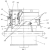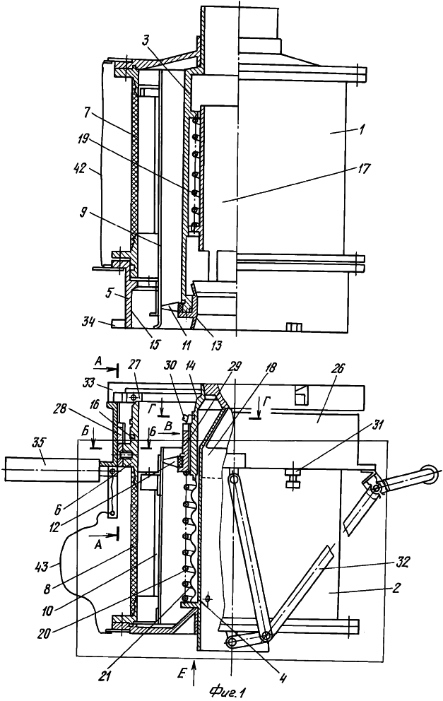 После этого поворотом рычагов 32 (в поворотном варианте замкового устройства – поворотом рукоятки 37 после снятия фиксации исходного положения подвижного корпуса 36 путем выведения защелки 39 из зацепления с фиксаторами 38) наконечник 2 перемещается вдоль оси штуцера 1. В процессе перемещения наконечника сначала происходит соприкосновение уплотнительного элемента 14 с уплотнительным элементом 13. При дальнейшем поступательном движении наконечника происходит сжатие сильфона 21 и пружины 20, открывается клапан 18 для протока жидкости. В то же время торец тарелки 27 клапана 18, упираясь в торец клапана 17, поднимает его и открывает канал для протока криогенной жидкости через отверстия в корпусе клапана 17. Уплотнительный элемент 16 наконечника взаимодействует с поверхностью 15 корпуса 5 штуцера, за счет чего полость между корпусами изолируется от окружающей среды. Стопор 28, попадая в прорези на запорных элементах 33, обеспечивает стопорение наконечника на штуцере. Рычаги фиксируются (в поворотном варианте фиксируется подвижный корпус 36 при взаимодействии фиксаторов 38 и защелки 39) в крайнем положении. После этого начинается заправка объекта криогенной жидкостью или ее перекачка.
