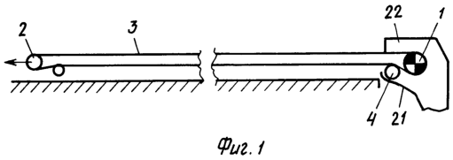 Ленточный конвейер действует следующим образом. При вращении приводного барабана 1 за счет создаваемого им крутящего момента ленте 3 сообщается необходимое тяговое усилие. Благодаря кинематической связи между приводным 1 и отклоняющим 4 барабанами крутящий момент передается также и на отклоняющий барабан 4, но который вращается с большей окружной скоростью, чем окружная скорость, с которой вращается приводной барабан 1, и линейная скорость движения ленты. Это обеспечивается за счет того, что передаточное отношение между приводным 1 и отклоняющим 4 барабанами меньше единицы. Поэтому при взаимодействии очистных элементов 16 (варианты – 17, 17 и 18, 19) с рабочей поверхностью ленты 3, загрязненной прилипшими к ней частицами транспортируемого груза, происходит очистка ленты 3. Продукты очистки ленты 3 по желобу 21 сбрасываются в приемную воронку 22, в которой и объединяются с общим потоком разгружаемого с конвейера транспортируемого груза. При этом продукты очистки ленты 3 проталкиваются по желобу 21 очистными элементами 17, 17 и 18 или 19 при достаточно большой скорости, что обеспечивает разгрузку продуктов очистки ленты 3 в приемную воронку 22 без забивания желоба 21. За счет большой окружной скорости наружных кромок очистных элементов и относительно небольшого диаметра отклоняющего барабана 4 обеспечивается также интенсивная самоочистка очистных элементов 17, 18 и 19 под действием центробежных сил