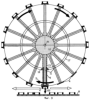 Другими словами, при вертикальном смещении цилиндрической втулки 9 происходит растягивание цилиндрической пружины 15, а при развороте элемента переноса 3 для принятия 19 изделия 18 с иной ориентацией осуществляют скручивание или раскручивание цилиндрической пружины 15 посредством конической зубчатой шестеренки 17. Следует отметить, что коническая зубчатая шестеренка 17 с одной стороны функционально связана с коническими поверхностями 10 каждого элемента переноса 3, а с другой стороны функционально связана с шаговым двигателем для одновременного разворота всех элементов переноса 3 при приеме 19 или при установке 20 изделий. Учитывая то, что цилиндрических пружин 15 достаточно большое количество в соответствии с количеством элементов переноса 3, то на шаговый двигатель подают управляющий сигнал только на разворот совокупностей элементов переноса 3, а возврат в исходное положение обеспечивает совокупность упругих сил цилиндрических пружин 15. После приема изделия 18 цилиндрическая пружина 15 возвращается в исходное положение.