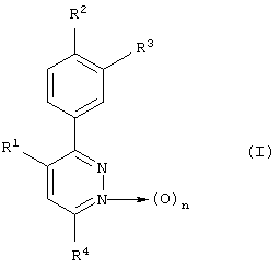1. Соединение фенилпиридазина, представленное следующей формулой (I): где R1 представляет замещенный или незамещенный фенил, где заместители выбраны из группы, содержащей галоген, низший алкил, низший алкокси и фенилтио; или пиридил; R2 представляет низшую алкоксигруппу, низшую алкилтиогруппу, низший алкилсульфинил или низший алкилсульфонил; R3 представляет водород или низшую алкоксигруппу; или R2 и R3 вместе могут быть конденсированы, образуя низший алкилендиоксигруппу; R4 представляет циано; карбоксил; замещенный или незамещенный низший алкил, где заместители выбраны из группы, содержащей гидроксил, карбоксил и N-гидрокси-N-низший алкиламинокарбонил; низший алкенил; низший алкилтио; низший алкилсульфинил; низший алкилсульфонил; низший алкилсульфонилокси; замещенный или незамещенный фенокси, где заместители выбраны из группы, содержащей галоген, низший алкокси, нитро, циано; незамещенный фенилтио или фенилтио, замещенный галогеном; пиридилокси; морфолино; морфолинокарбонил; 1-пиперазинилкарбонил, замещенный низшим алкилом; замещенный или незамещенный амино, где заместители выбраны из группы, содержащей низший алкил, бензил, фенил, который может быть замещен атомами галогена или низшими алкоксигруппами, n=0; или его соль. 2. Промежуточное соединение для получения соединения фенилпиридазина по п.1, представленного формулой (I), где данное промежуточное соединение выбрано из группы, включающей 4-(4-хлорфенил)-3-[4-(метилсульфонил)фенил]пиридазин; 4-(4-хлорфенил)-3-[4-(метилсульфонил)фенил]пиридазин-1-оксид; 3-(4-метоксифенил)-4-фенилпиридазин-1оксид. 3. Соединение фенилпиридазина или его соль по п.1, где данное соединение выбрано из группы, включающей 3,4-бис(4-метоксифенил)-6-(фенокси)пиридазин, 3,4-бис(4-метоксифенил)-6-(2,3-дифторфенокси)пиридазин, 3,4-бис(4-метоксифенил)-6-(2,5-дифторфенокси)пиридазин, 3,4-бис(4-метоксифенил)-6-(2,6-дифторфенокси)пиридазин, 3,4-бис(4-метоксифенил)-6-(3,4-дифторфенокси)пиридазин, 3,4-бис(4-метоксифенил)-6-(2,3,5,6-тетрафторфенокси)пиридазин, 3,4-бис(4-метоксифенил)-6-(2,3,4,5,6-пентафторфенокси)пиридазин, 3,4-бис(4-метоксифенил)-6-(3,4,5-трихлорфенилтио)пиридазин, 3,4-бис(4-метоксифенил)-6-(4-метоксифенокси)пиридазин, 3,4-бис(4-метоксифенил)-6-(4-нитрофенокси)пиридазин, 3,4-бис(4-метоксифенил)-6-(2-цианофенокси)пиридазин, 3,4-бис(4-метоксифенил)-6-(3-цианофенокси)пиридазин, 6-(2,4-дифторфенокси)-3-(4-метоксифенил)-4-(4-пиридил)пиридазин, 6-(2,3-дифторфенокси)-3-(4-метоксифенил)-4-фенилпиридазин, 6-(2,4-дифторфенокси)-3-(4-метоксифенил)-4-фенилпиридазин, 3-(4-метоксифенил)-6-(2,3,4,5,6-пентафторфенокси)-4-фенилпиридазин, 3-(4-метилтиофенил)-6-фенилтио-4-(4-фенилтиофенил)пиридазин, 4-(4-хлорфенил)-6-(2,4-дифторфенокси)-3-[4-(метилтио)фенил]пиридазин, 3,4-бис(4-метоксифенил)-6-цианопиридазин и 6-циано-3-(4-метоксифенил)-4-фенилпиридазин и их соли. 4. Лекарственное средство, ингибирующее производство интерлейкина-1 5. Ингибитор производства интерлейкина-1 6. Фармацевтическая композиция, ингибирующая производство интерлейкина-1 7. Соединение фенилпиридазина (I) или его соли для производства лекарственного средства, ингибирующего производство интерлейкина-1