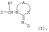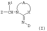 1. Способ получения соединений формулы (I) в которой R1 представляет собой атом водорода, А представляет собой этиленовую группу, которая может быть замещена алкилом, или триметиленовую группу, которая может быть замещена алкилом, D представляет собой нитро или цианогруппу, Х представляет собой атом кислорода или серы, или группу в которой R3 представляет собой атом водорода или алкильную группу, и Z представляет собой 2-хлорпирид-5-ил, отличающийся тем, что соединение формулы (II) в которой A, D и Х имеют указанные выше значения, подвергают взаимодействию с основанием в присутствии разбавителя с последующим взаимодействием реакционной смеси со смесью из ХХМП/ХМП (2-хлор-5-хлорметилпиридин/2-хлор-5-метилпиридин) с соответствующими гидрохлоридами.