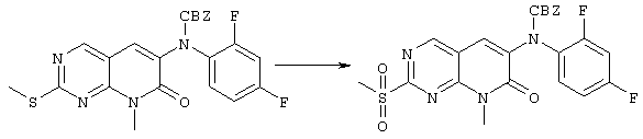 (8 г) в воде (50 мл) при 0-5°С. Затем смесь медленно нагревали до комнатной температуры и перемешивали еще 5 часов. Водная обработка приводила к техническому сульфону.