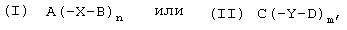 y и y’ являются одинаковыми или разными и означают целые числа, которые выбирают таким образом, что остатки В или соответственно С имеют долевую молекулярную массу от 100 до 1000000 г/моль, предпочтительно от 400 до 100000 г/моль и в особенности от 400 до 50000 г/моль, причем у’ также может означать 0;
