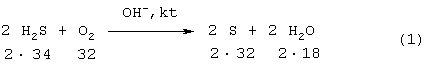 Сероводород в присутствии фталоцианиновых катализаторов в слабощелочной среде, в том числе в аммиачных растворах, окисляется по реакции: