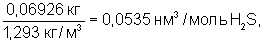 На 1 моль сероводорода требуется не менее 0,5 молей или 16 г кислорода. Теоретически минимальный расход воздуха составляет: