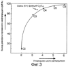 Кроме того, на фиг.3 показана зависимость между типом экстракционного растворителя (углеродным числом растворителя) и выходом (коэффициентом экстракции) деасфальтированного нефтепродукта в случае, когда процесс селективной жидкостной экстракции выполняли с использованием в качестве исходного нефтепродукта нефтяного остатка вакуумной перегонки аравийской легкой нефти. Растворители, обозначенные Cn (где n равно 2-6), представляют собой насыщенные линейные углеводороды (парафины), молекулу которых составляют n атомов углерода.