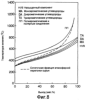 В соответствии с результатами, показанными на фиг.4, несмотря на то, что остаточное содержание примесей возрастает с увеличением выхода деасфальтированного нефтепродукта (коэффициента экстракции), соответствующие им селективности можно определить по кривой для каждой примеси, которая располагается ниже диагонали. В частности для Ni и V это предполагает, что при коэффициенте экстракции выше 60% остаточное содержание этих примесей в экстрагированном нефтепродукте становится высоким. Поэтому, если слишком увеличить коэффициент экстракции в процессе экстракции растворителем, то, в частности, остаточные содержания Ni и V быстро возрастут, что приведет к значительному ужесточению условий процесса гидрирования на последующих стадиях. В результате, поскольку применение жестких условий процесса становится необходимостью, процесс экстракции растворителем обычно проводят с коэффициентами экстракции в пределах 60-85%.