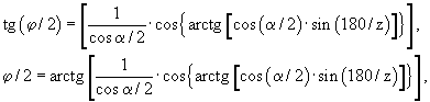 tg( /2)=t/2·h·cos( )=16,351/2·14,160·cos 3°14’30″=0,578291