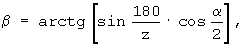 – рассчитываем угол профиля в сечении, перпендикулярном линии впадин, для нарезания впадин зубьев (угол заточки фрезы):