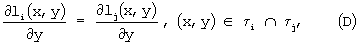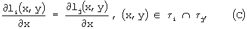 где пересечение многоугольников i и j представляет собой их общую границу. Альтернативно, поверхности элементарных линз могут стыковаться друг с другом так, чтобы полученная поверхность была дважды дифференциально-непрерывной на треугольниках i, что выражается следующими уравнениями: