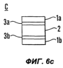 Запоминающий контур С представлен более подробно на фиг.6с, где он изображен в сечении и в соответствии со вторым предпочтительным вариантом осуществления изобретения. Другими словами, функциональный материал 3 содержится в двух промежуточных слоях 3а, 3b, которые служат интерфейсом между электродами 1а, 1b соответственно и расположенным между ними запоминающим материалом 2. Должно быть понятно, что запоминающее устройство типа представленного на фиг.6а, 6b может быть снабжено также изолирующим слоем (так называемым разделительным слоем), расположенным над электродами 1а. Поверх этого слоя может быть помещено второе аналогичное устройство с повторением данной компоновки, с образованием в результате собранного в виде стопы (т.е. объемного или трехмерного) устройства, подобного устройствам такого типа, известным из уровня техники. Должно быть также понятно, что хотя на чертежах не показаны какие-либо периферийные контура, все электроды 1а, 1b, формирующие соответственно управляющие шины и шины данных запоминающего устройства по фиг.6а, должны быть присоединены к соответствующим драйверным, управляющим и считывающим контурам для выполнения операций записи/считывания применительно к ячейкам памяти запоминающего устройства с матричной адресацией.