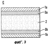 Представленное на фиг.6 устройство формируется с использованием первого набора параллельных полосковых электродов 1b, которые на фиг.6b изображены расположенными на подложке и покрытыми промежуточным слоем 3b функционального материала. За этим слоем следует цельный слой ферроэлектрического запоминающего материала 2, например, представляющего собой ферроэлектрический полимер. Этот слой, в свою очередь, покрыт цельным слоем 3а функционального материала, поверх которого расположен другой набор электродов, аналогичным образом образованный параллельными полосковыми электродами 1а. Эти электроды, однако, ориентированы ортогонально по отношению к электродам 1b для того, чтобы сформировать ортогональную электродную матрицу. Электроды 1а могут рассматриваться, например, в качестве управляющих шин (или линий) запоминающего устройства с матричной адресацией. Соответственно, электроды 1b могут рассматриваться в качестве шин (линий) данных этого устройства. В зонах скрещивания управляющих шин 1а и шин 1b данных задаются ячейки памяти матрицы, формируемой в цельном слое запоминающего материала 2. Таким образом, в состав запоминающего устройства входит множество ячеек памяти (соответствующих запоминающим контурам С, количество которых соответствует количеству скрещиваний электродов в матрице).