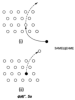 Далее будет более подробно описан принцип работы функционального материала. Ионизированные и нейтральные примесные частицы могут включаться в электродную структуру несколькими различными способами, как это показано на фиг.5а, 5b и 5с. Замещение, которое иллюстрируется фиг.5a(i) и 5a(ii), означает, что примесь вытесняет частицу, входящую в состав функционального материала, и занимает ее место. Освобожденная частица функционального материала, в свою очередь, может мигрировать к другому узлу, где она может быть снова связана, например, посредством любого из механизмов, представленных на данной фигуре или на других фиг.5b, 5d. На фиг.5b(i) и 5b(ii) иллюстрируется встраивания частицы путем заполнения вакансии, а на фиг.5c(i) и 5c(ii) – путем внедрения между узлами кристаллической решетки. Следует отметить, что во всех рассмотренных случаях имеет место определенная подвижность атомов и вакансий в функциональном материале. В связи с этим даже плотный материал с хорошими барьерными свойствами может, за счет перегруппировки атомов и молекул, включать в себя примеси в глубине слоя этого материала, т.е. вне первого монослоя, контактирующего с запоминающим материалом 2.