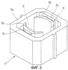 Чтобы решить вышеупомянутые проблемы, узел статора, изготовленный способом порошковой металлургии и показанный на фиг.3 и 4, содержит корпус 5, сформированный путем введения материала в виде магнитного порошка в металлическую пресс-форму, имеющую предварительно определенную форму, приложения предварительно определенного давления и нагревания до предварительно определенной температуры, и обмотку 6, намотанную в намоточной канавке 5с корпуса 5 для генерирования индукционного магнетизма.