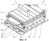 Подвижная рама 42 смонтирована с возможностью продольного, если смотреть по стрелке А, перемещения в двух противоположных направлениях посредством связанных с ней рукояток 46 с шагом, равным расстоянию между ячейками матрицы 1 в этом же направлении. В данном примере кондукторная пластина имеет 54 отверстия и, соответственно, матрица выполнена с 54 ячейками. Направляющие рамы 42 выполнены таким образом, что обеспечивают возможность перемещения распределителя 43 в двух противоположных направлениях (по стрелке В), перпендикулярных первому направлению (продольному).
