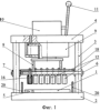 Вертикальное усилие заданного направления через толкающий элемент 8, жестко связанный с базовой плитой 6, передается на группу выполненных с плавающими головками формующих узлов 12 (фиг.1) по числу ячеек 5 матрицы 1. Матрица 1 размещена на плите 2 таким образом, чтобы ее ячейки 5 были соосны формующим узлам 12.