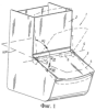 На фиг.2 показана разобранная непрозрачная крышка 4, имеющая на заднем крае упомянутые выше полости 7 для устройства 6 для закрывания. На дне полости имеется канавка, в которую входит взаимодействующий с ней конец наружного корпуса 9 демпфера 8 для предотвращения поворота наружного корпуса 9 относительно крышки 4. Другой конец демпфера 8 снабжен поворотным телом 10, вставленным в наружный корпус 9 и имеющим приводные поверхности (не показаны), которые предназначены для переноса консистентной силиконовой смазки внутри демпфера при повороте поворотного тела 10 относительно наружного корпуса 9. Конец поворотного тела 10 имеет квадратное отверстие 11, в которое вставлен взаимодействующий с ним квадратный штифт 12. Этот штифт закреплен на несущей пластине 13, имеющей на своем противоположном конце установочную шпильку 14 для установки в соответствующую выемку в боковой стенке контейнера при сборке. Несущая пластина тоже установлена на контейнере, а ее поворот предотвращается кромкой 15, взаимодействующей с контейнером.