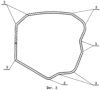 Прокатка профиля осуществляется следующим образом. Заготовка – сварная труба захватывается валками первого калибра. В первых трех валках осуществляется образование формообразующих ребер 3, далее получают простые по геометрии базовые поверхности 5, базовые поверхности сложной формы 7, производится укатка отгиба треугольной формы 9, формируются паз на вертикальной стене 12 и на опорной площадке 13. В чистовых калибрах проводится доводка профиля до заданных размеров в пределах допуском посредством регулировки зазора 14 между валками. Прокатка ведется в непрерывном режиме.
