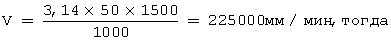 где V – окружная скорость, мм/мин;