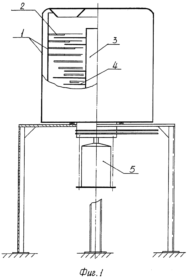 Ножевые режущие элементы 2 и 4 выполнены в виде плоских секторов кругового кольца и установлены с взаимным частичным перекрытием (от уровня к уровню) так, что, например, ножевые режущие элементы 2 корпусной емкости 1 образуют подобие ирисовой диафрагмы (при виде по оси вращения роторного измельчителя 3); при этом плоскость всех секторов перпендикулярна оси вращения роторного измельчителя 3. Винтовые линии размещения ножевых режущих элементов 2 (корпусной емкости 1) и 4 (роторного измельчителя 3) встречно ориентированы и имеют уменьшающийся (к донной части корпусной емкости 1) шаг. Режущие грани (например, 4 “а” на фиг.3) ножевых режущих элементов 2 и 4 встречно ориентированы и каждая в отдельности выполнена в виде части поверхности кругового или эллиптического тора.