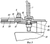 Поперечным движением панель осаживают во второе конечное положение – в опорный паз 13 (фиг.2) нижнего прогона. В результате вверху перед кромками панели образуются два поперечных зазора 19, 20. Положение панели с зазорами 14, 19, 20 в пазах фиксируется от смещения путем зажима верхней части панели 12 между полкой 16 и прижимной рейкой 18 при помощи болтов 21 и гаек 23.