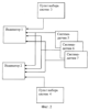 Схема подключения пульта к системе индикации показана на фиг.2. Система индикации отображает необходимые пилоту навигационные, пилотажные и другие параметры. Система индикации состоит из нескольких индикаторов (до 5 шт.), из которых показаны два – индикатор 1 и 2, принимает и индицирует параметры от систем-датчиков 5, 6, 7. К индикаторам каждого пилота подключен пульт выбора систем 3 или 4. Пока в работу не вмешивается пульт выбора систем 3 и 4, индикаторы в соответствии с встроенным алгоритмом сами выбирают исправную систему-датчик. В случае подозрения на неисправность пилот выбирает систему-датчик, несколько раз нажимая на необходимую кнопку. Например, нажимает ВСС два раза, выбирая тем самым то, что система индикации принимает параметры только от ВСС2, игнорируя параметры от ВСС1 и ВССЗ. Над кнопкой ВСС, на индикаторе пульта высвечивается номер выбранной системы “2”. Программное обеспечение индикатора, приняв указание от пульта выбора систем, индицирует параметры только от ВСС2. Чтобы вернуться к нормальному режиму работы, пилот нажимает кнопку “АВТ” и кнопку ВСС. То есть пульт выбора систем не переключает входы системы индикации, а только выдает указание: от каких систем-датчиков параметры считать верными. При этом надежность трактов передачи данных от систем-датчиков до системы индикации не уменьшается, так как пульт выбора систем не входит в эти тракты. В случае отказа пульта выбора систем система индикации будет функционировать в штатном режиме.