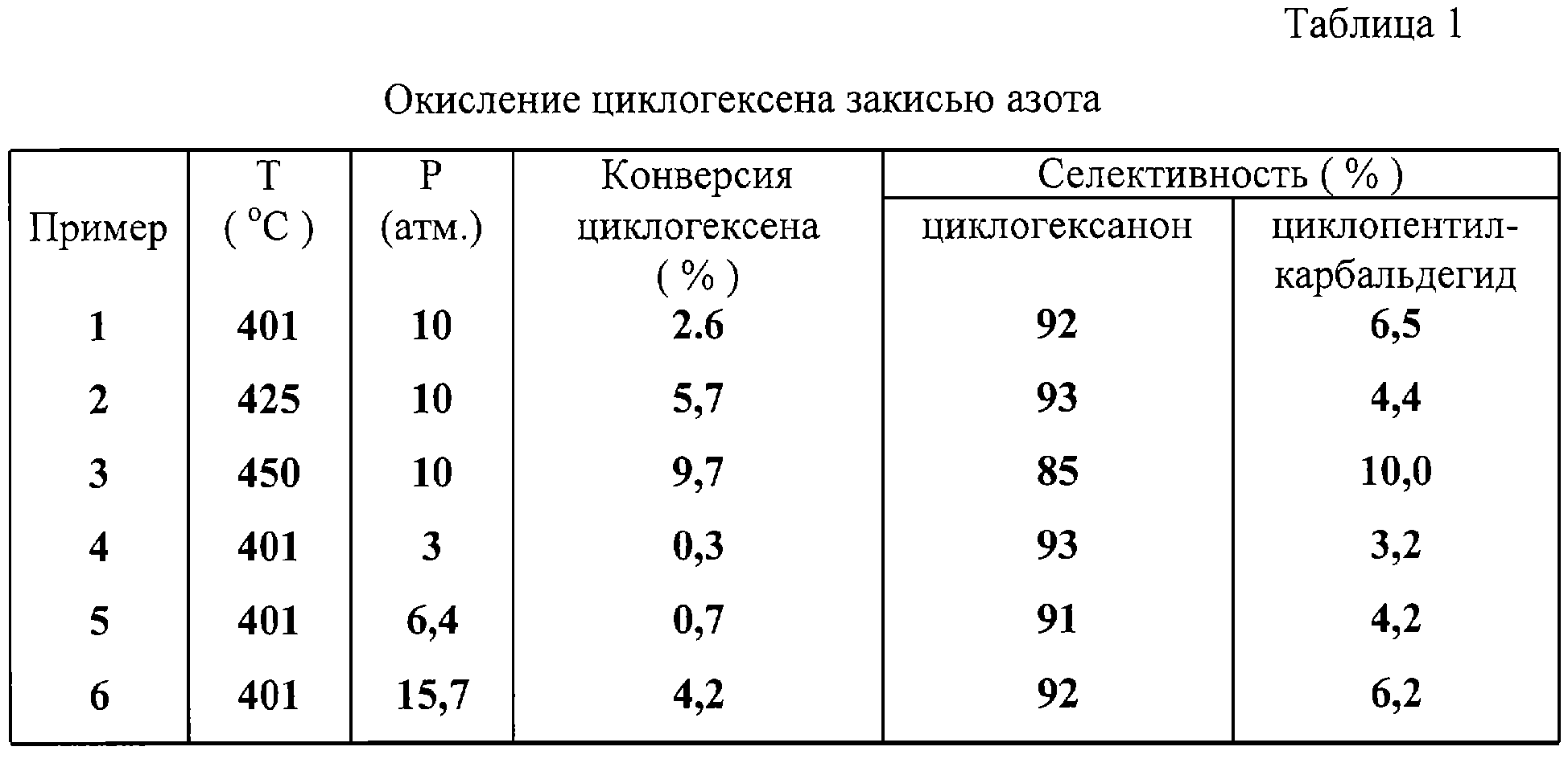 1. Способ получения карбонильных соединений, осуществляемый путем реакции закиси азота с алкенами в присутствии инертного газа-разбавителя, отличающийся тем, что реакцию ведут в газовой фазе при температуре 401-700°С и давлении 2-300 атм. 2. Способ по п.1, отличающийся тем, что мольное отношение закиси азота к алкену лежит в пределах от 0,01 до 100. 3. Способ по п.1, отличающийся тем, что закись азота может содержать другие газы, присутствие которых связано с методом ее получения. 4. Способ по п.1, отличающийся тем, что исходный алкен используют в смеси с другими соединениями, присутствие которых связано с методом получения алкена. 5. Способ по п.1, отличающийся тем, что для получения циклогексанона используют продукты гидрирования бензола, содержащие не менее 5 мол.% циклогексена, без их предварительного разделения или после частичного разделения.