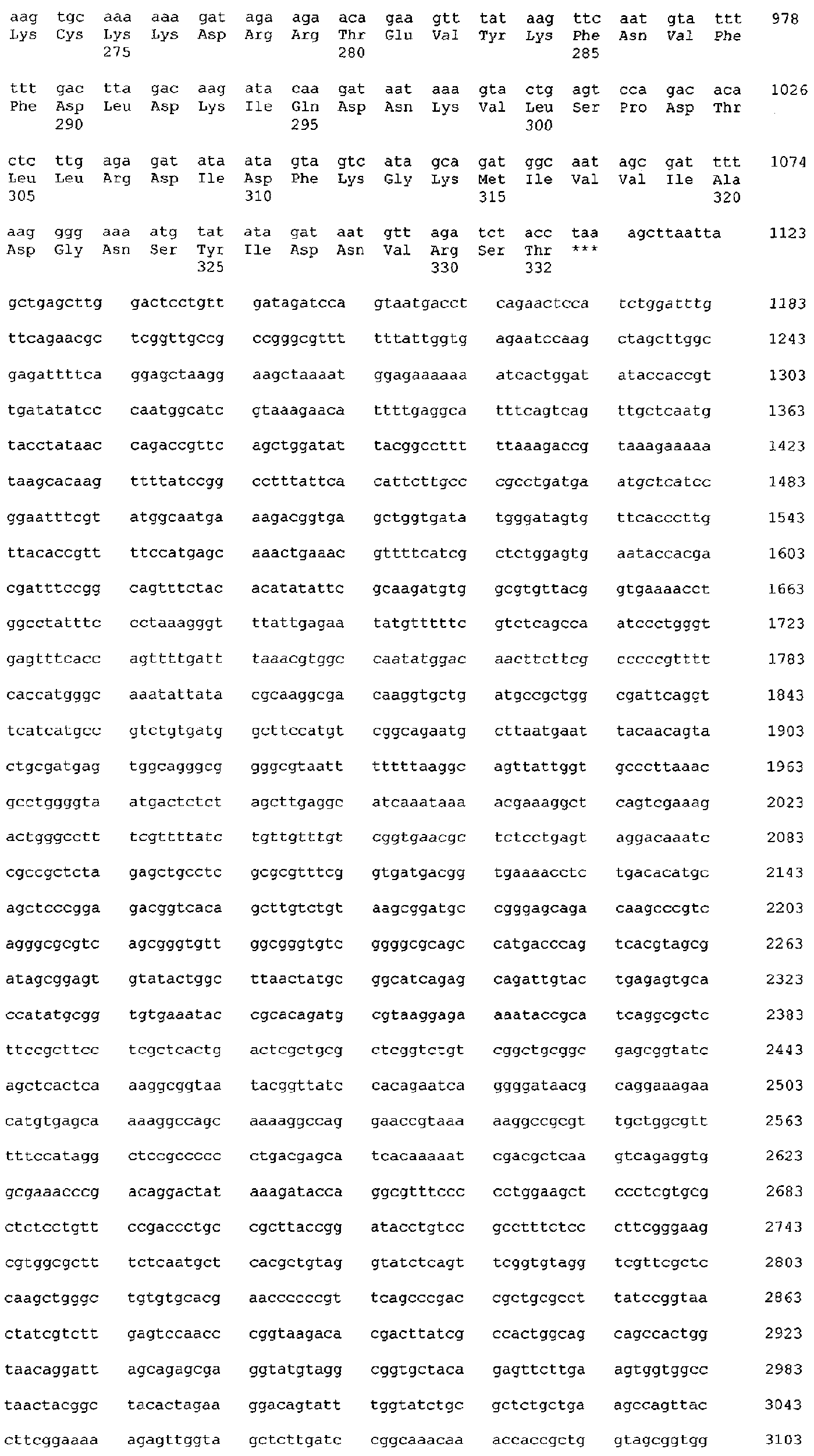 2. 5′-atatttccggaaattaagatcttcttgaatcagaagcgattacttctttgtc-3′,