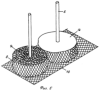 На дне, для усиления жесткости сквозного берегозащитного сооружения, может укладываться сетка, на которую будут устанавливаться цилиндрические габионы. Сетка будет усиливать жесткость продольного сквозного берегозащитного сооружения и предотвращать выпадение камней из цилиндрических габионов.