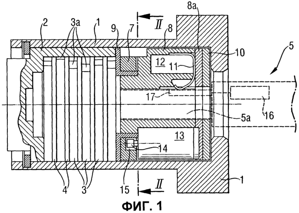 11. Комбинация по п.10, отличающаяся тем, что поворот сочленяющего элемента (14) в его несочленяющее положение осуществляется посредством направляющей поверхности (15а) направляющей канавки (15) в упомянутом специальном блокирующем диске (7).
