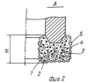 На фиг.1 представлен общий вид алмазной буровой коронки, а на фиг.2. – фрагмент сектора матрицы в разрезе. Алмазная буровая коронка состоит из алмазосодержащей матрицы а и металлического корпуса б. Матрица а высотою Н состоит из твердосплавной шихты 1, износостойкого твердосплавного наполнителя 2, инфильтрационного материала 3, алмазов импрегнированного слоя 4 и алмазов подрезного слоя 5.