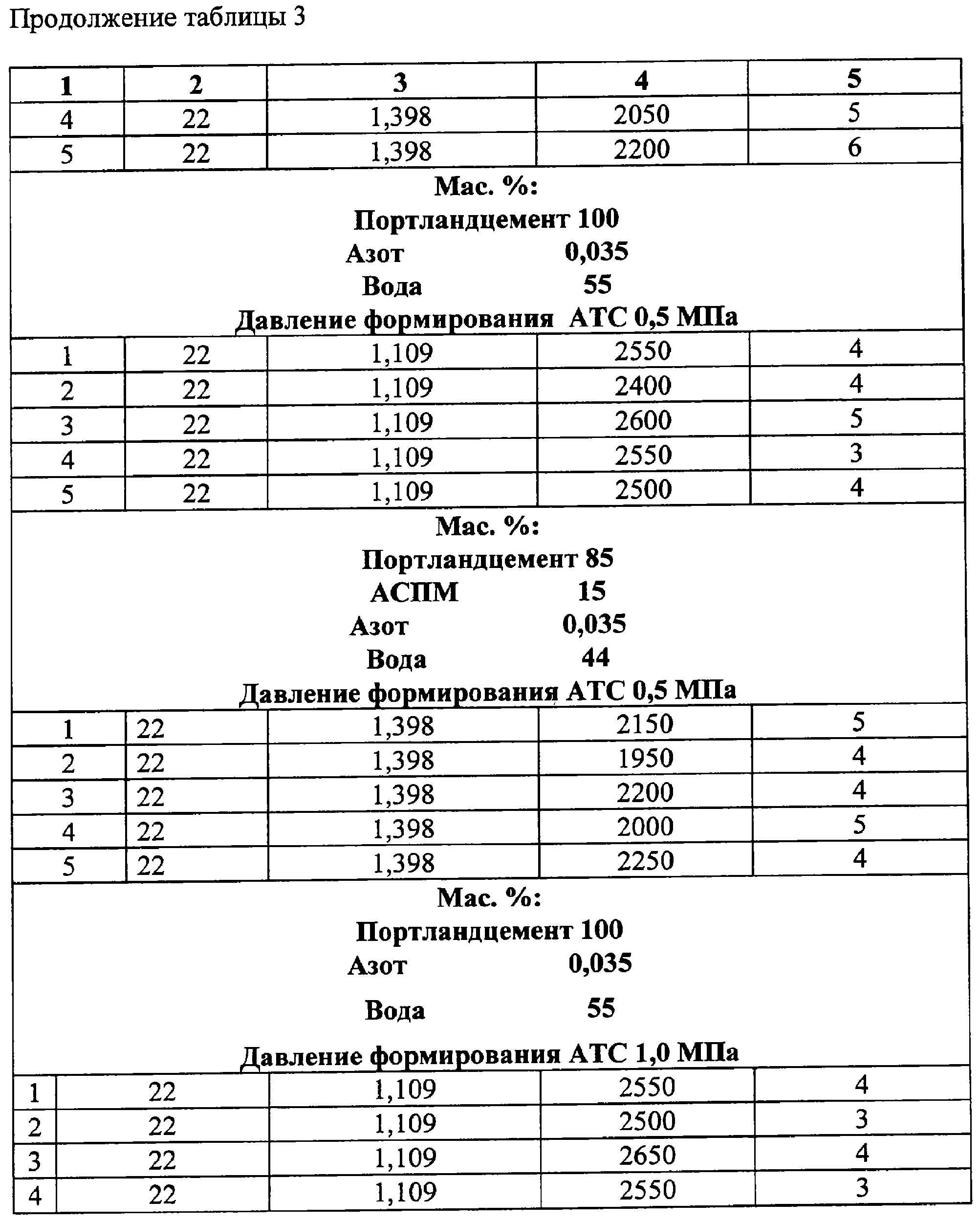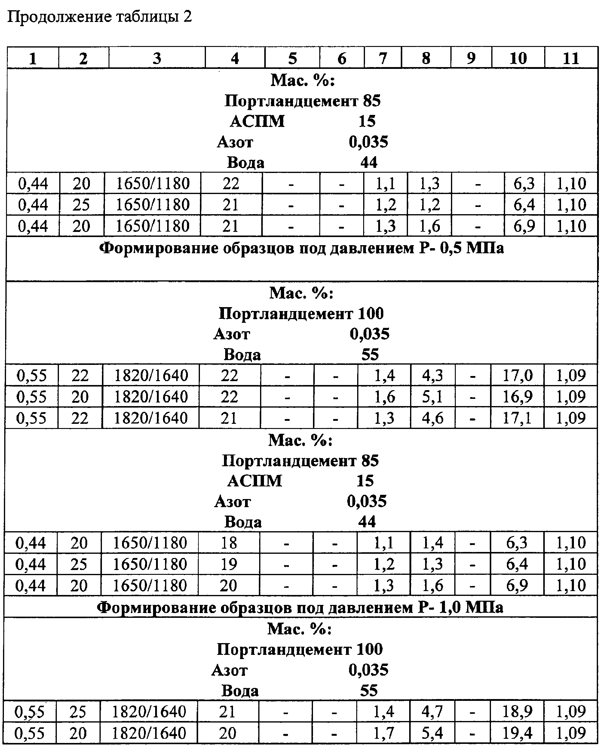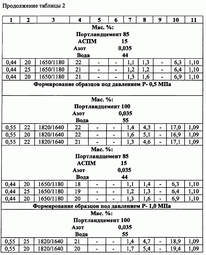 Mac.%: Портландцемент 100 Азот 0,035 Вода 55 |