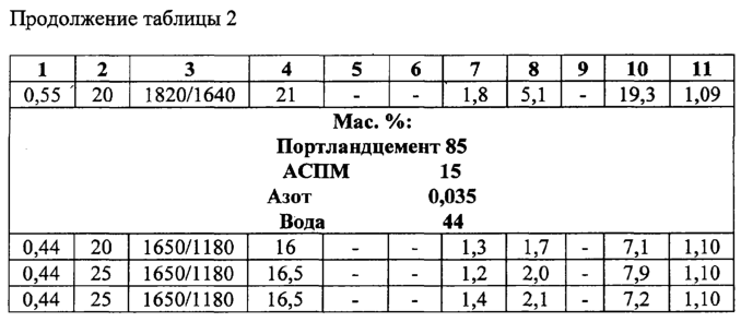 Mac.%: Портландцемент 85 АСПМ 15 Азот 0,035 Вода 44 |