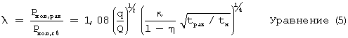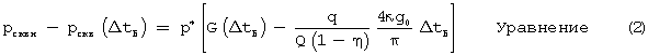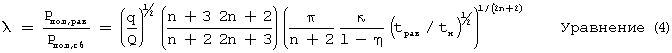 Для правильной трещины (длина трещины больше ширины трещины) аналитическое исследование показывает, что отношение полезного равновесного давления Рпол,рав к полезному давлению сразу после сброса расхода (т.е. при t=tн), Рпол,сб удовлетворяет следующему уравнению: