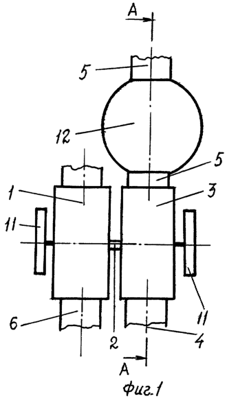 Роторы 8 преобразователя энергии 1 так же, как и роторы 8 компрессора 3, каждые самостоятельно связаны между собой своей парой зубчатых колес 11 с передаточным отношением, равным единице.