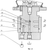 На корпус 1 установлена обойма 26. Кроме того, между кольцевыми полостями 4 и 5 по разные стороны кольцевых полостей 4 и 5 расположены кольцевые уплотнительные элементы 27, 28.