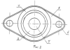 Известен также корпус шаровой опоры, по своей сущности наиболее близко подводящий к заявляемому техническому решению и взятый нами в качестве прототипа. Корпус шаровой опоры представляет собой полусферическую поверхность, смыкающуюся своей экваториальной плоскостью с рельефно выступающим присоединительным фланцем, выполненным монолитно в одной детали. Присоединительный фланец корпуса шаровой опоры имеет внешний вид плоского диска, опоясывающего экваториальную часть корпуса с выступами, имеющими округлые очертания и отверстия крепежа (2).