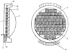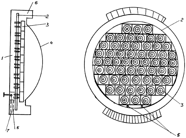 – круглосимметричный отражатель, состоящий из микроструктурных элементов, граничащих друг с другом по меридиальным и экваториальным хордам остова и имеющих равные полные углы излучения в меридиальной и экваториальных плоскостях и макроструктурные отражатели выполнены в форме сферических ячеек, геометрические центры кривизны которых расположены на нормалях к поверхности остова [4];