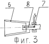 Открывается всасывающий патрубок (не показан), включается привод 4 вентилятора 3. Вал привода 4 начинает вращаться, а так как он соединен с валом 2, размещенным в нагнетательном патрубке 1, то вращается и вал 2. Воздух от вентилятора 3 по нагнетательному патрубку 1, через разделители потока 9, поступает к выходу из нагнетательного патрубка 1, обтекая конусный стакан 5. При этом воздух разделителями (если они выполнены в виде спиралевидных изогнутых пластин) закручивается и направляется к выходу из нагнетательного патрубка 1, где еще больше закручивается направляющими элементами (на чертеже не показаны). Закрученная струя воздуха, обтекая конусный стакан 5, поступает в топку. Одновременно подается топливо в замкнутое пространство (на чертеже не показано), в котором вращается вал 2 с радиальными 7 и осевым 8 отверстиями. Через радиальные отверстия 7 топливо поступает в осевое отверстие 8 и по нему поступает к форсунке 6. Форсунка 6 направляет топливо на внутреннюю вращающуюся спрофилированную поверхность стакана 5 и на ней образуется топливная пленка, которая плавно стекает с кромок стакана 5, закрученным потоком подается в топку и на кромке стакана встречается с вращающейся струей воздуха, при этом идет мелкодисперсное перемешивание топлива с воздухом.