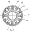 Из теплообменника 14 на фиг.1 изображен только его внутренний корпус 48. Последний имеет, по существу, выполненную в виде горшка конструкцию с дном 50 и периферийной стенкой 52. На внешней стороне дна 50 и периферийной стенке 52 предусмотрены так называемые внешние ребра 54, которые направляют циркулирующую в теплообменнике 14, нагреваемую среду и переносят на нее тепло. На внутренней стороне корпуса 48 теплообменника, т.е. на обращенной к жаровой трубе 22 стороне, предусмотрены так называемые внутренние ребра 56, которые простираются от дна 50 в продольном направлении жаровой трубы 22, по существу, по всей длине корпуса 48 теплообменника или его периферийной стенки 52. Эти внутренние ребра 56 служат для того, чтобы увеличить площадь теплопереноса, на которой тепло от покидающих жаровую трубу 22 продуктов сгорания передается на корпус 48 теплообменника, а также для того, чтобы задать текущим обратно к выпускному патрубку 59 продуктам сгорания определенное направление течения.